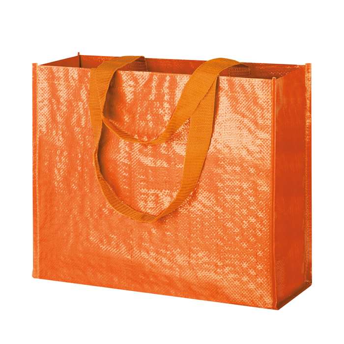 borsa shopping in polipropilene; manici lunghi; soffietto; finitura lucida