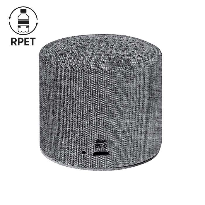 speaker / altoparlante in RPET; connessione bluetooth 5.0; 3W; base antiscivolo; cavo di ricarica USB incluso