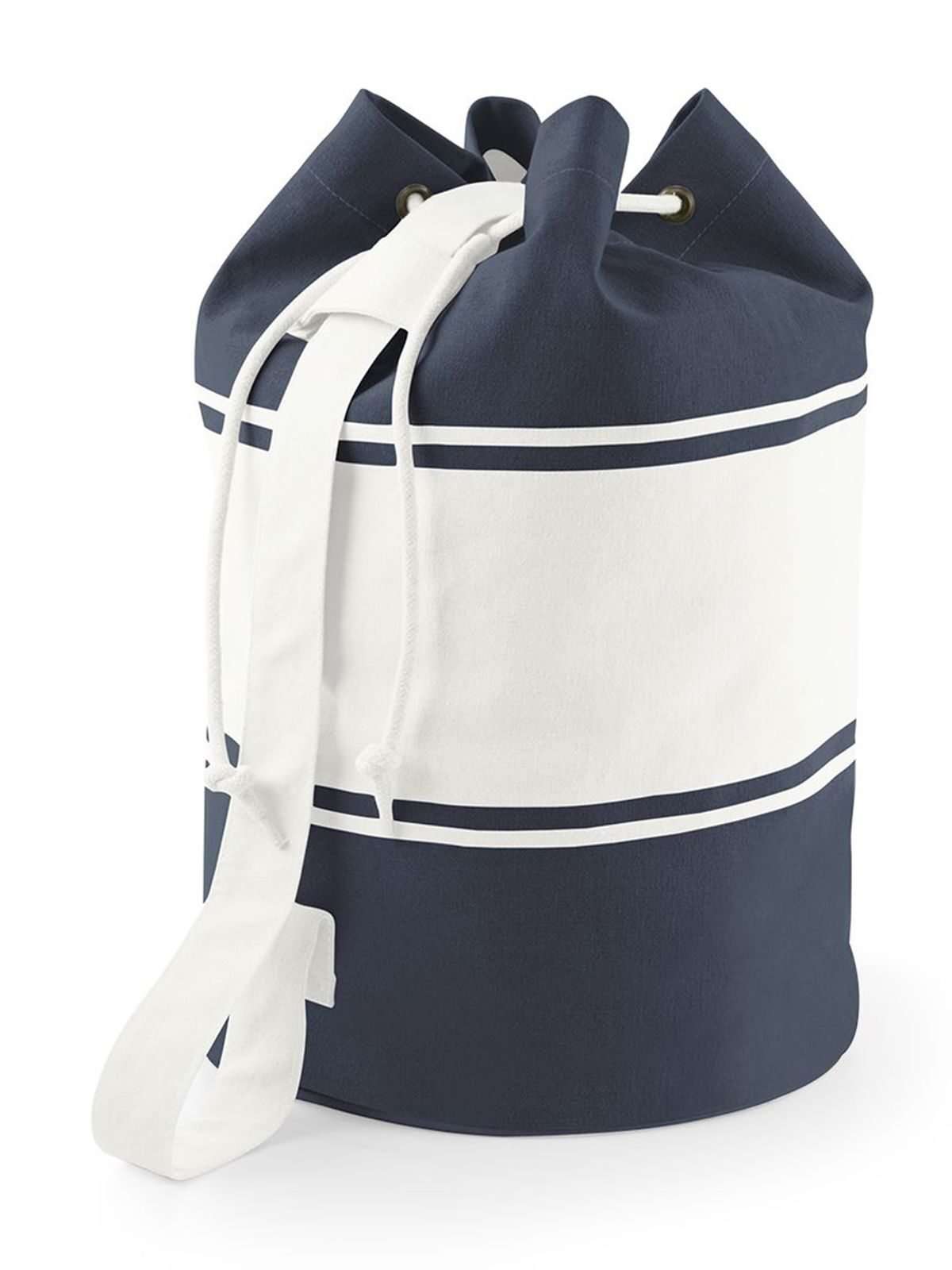 100% cotone Canvas. Sacca stile nautica adatta alla spiaggia, chiusura con cordoncino. Etichetta removibile. Dimensioni: 30 x 53 x 30 cm, capacita': 30 litri, area stampabile: 41 x 18 cm.