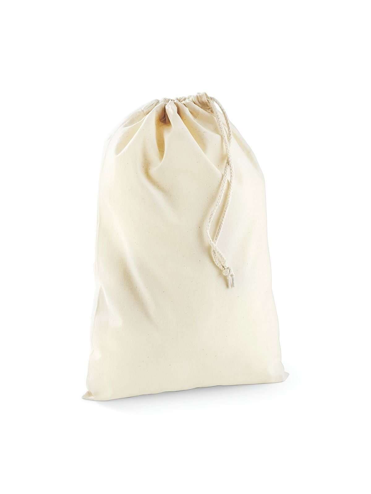 100% cotone. Sacchetti con chiusura in cordino disponibili in 6 taglie (XXS, XS, S, M, L, XL). Etichetta removibile. XXS: 10x15 cm, capacità: 0,25 litri; XS: 14x20 cm, capactità: 1 litro; S: 25x20 cm, capacità: 3 litri; M: 30x45 cm, capacità: 8 litri; L: 40x50 cm, capacità: 14 litri; XL: 49x75 cm, capacità: 38 litri.