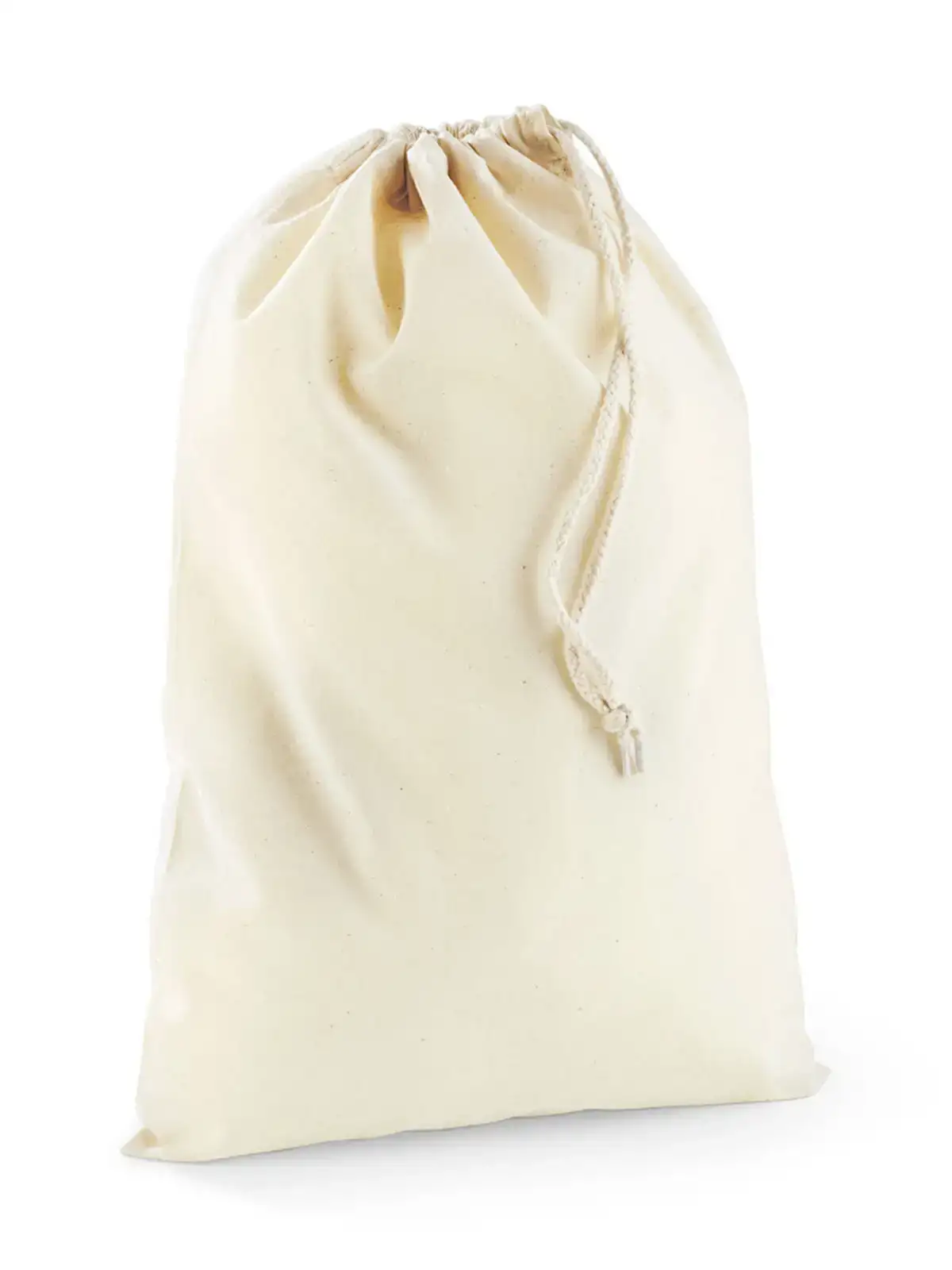 100% cotone. Sacchetti con chiusura in cordino disponibili in 6 taglie (XXS, XS, S, M, L, XL). Etichetta removibile. XXS: 10x15 cm, capacit??: 0,25 litri; XS: 14x20 cm, capactit??: 1 litro; S: 25x20 cm, capacit??: 3 litri; M: 30x45 cm, capacit??: 8 litri; L: 40x50 cm, capacit??: 14 litri; XL: 49x75 cm, capacit??: 38 litri.
