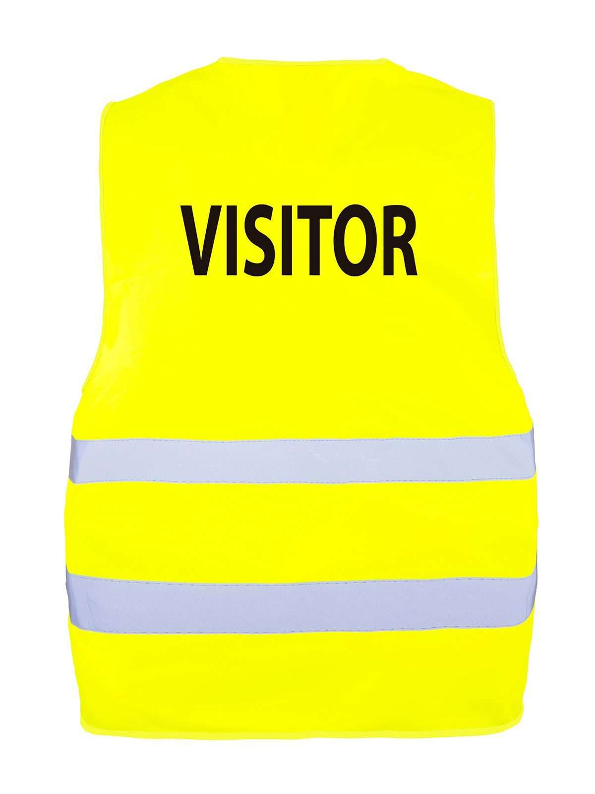 100% poliestere. Gilet di sicurezza "Passau", EN ISO 20471:2013/A1:2016, con stampa "Visitor", due strisce riflettenti larghe 5 cm attorno al corpo, misura regolabile con due chiusure in velcro. Il produttore garantisce le proprietà riflettenti secondo la norma EN per 25 cicli di lavaggio a 40°C, l'EAN/codice a barre può essere scansionato nell'etichetta, confezionati singolarmente.