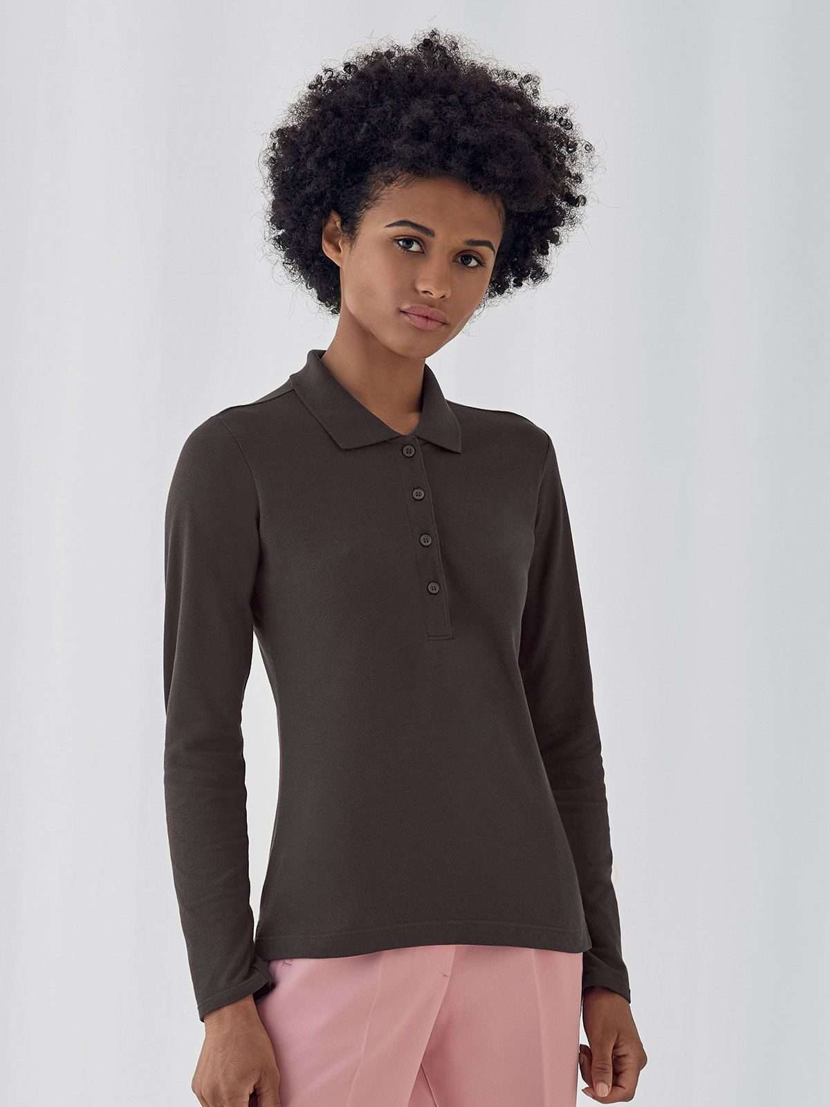 100% cotone ring-spun. Polo a maniche lunghe set-in, 4 bottoni tono su tono, leggermente sfiancata, struttura con cuciture e spacchetti laterali, colletto in costina.