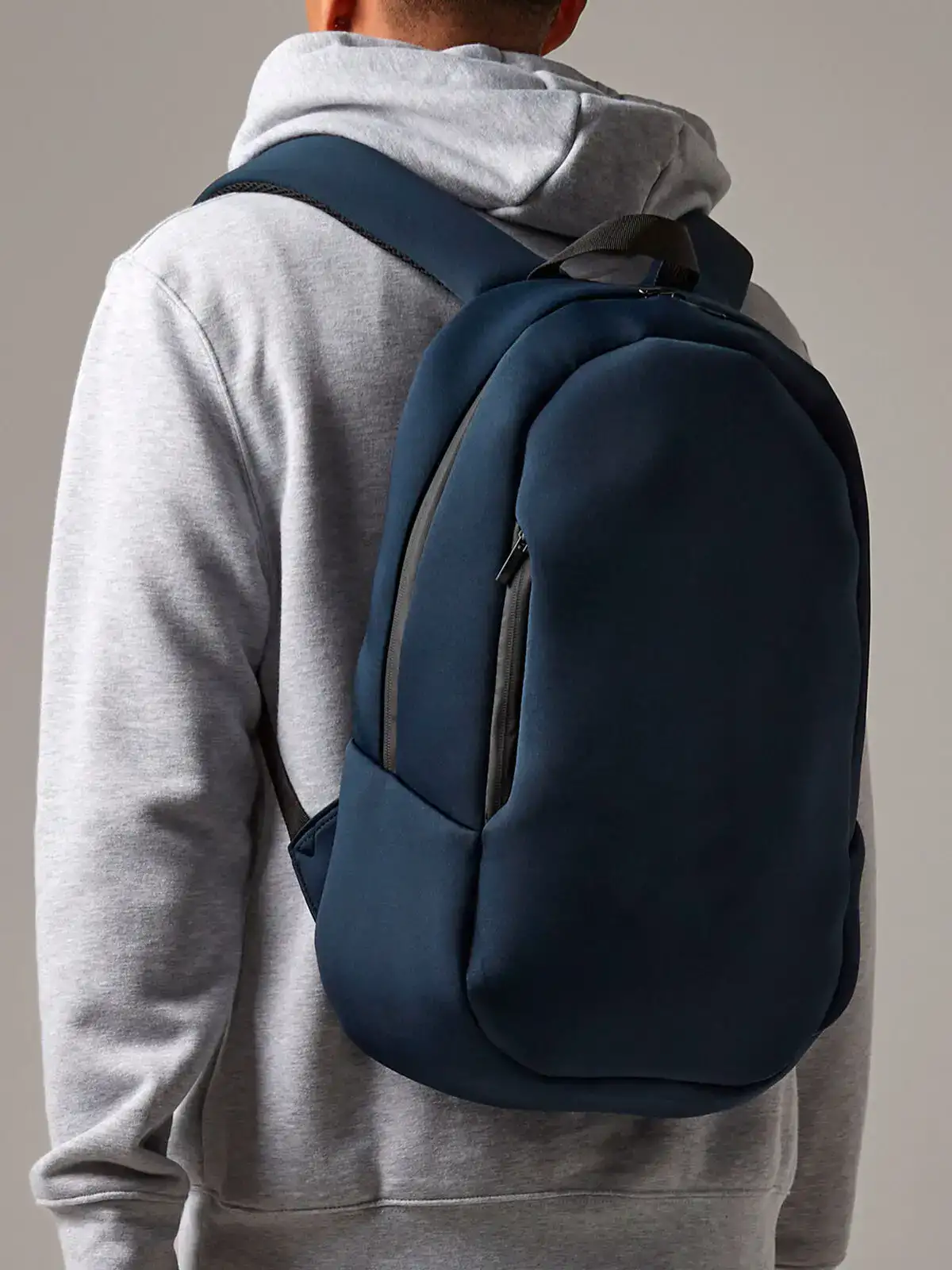 94% poliestere, 6% elastan. Zaino con tasca esterna con cerniera, tasca interna, puo' contenere laptop fino a 15.6", pannello posteriore e bretelle imbottiti. Dimensione: 31 x 50 x 16 cm, capacita': 20 litri, area di stampa: 34 x 16 cm.