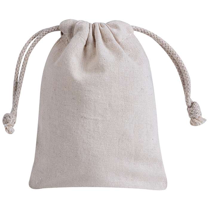sacchetto; doppia corda di chiusura; colore naturale; rifiniture cucite; tecnica di stampa consigliata: serigrafica - transfer - digitale; 120 GR