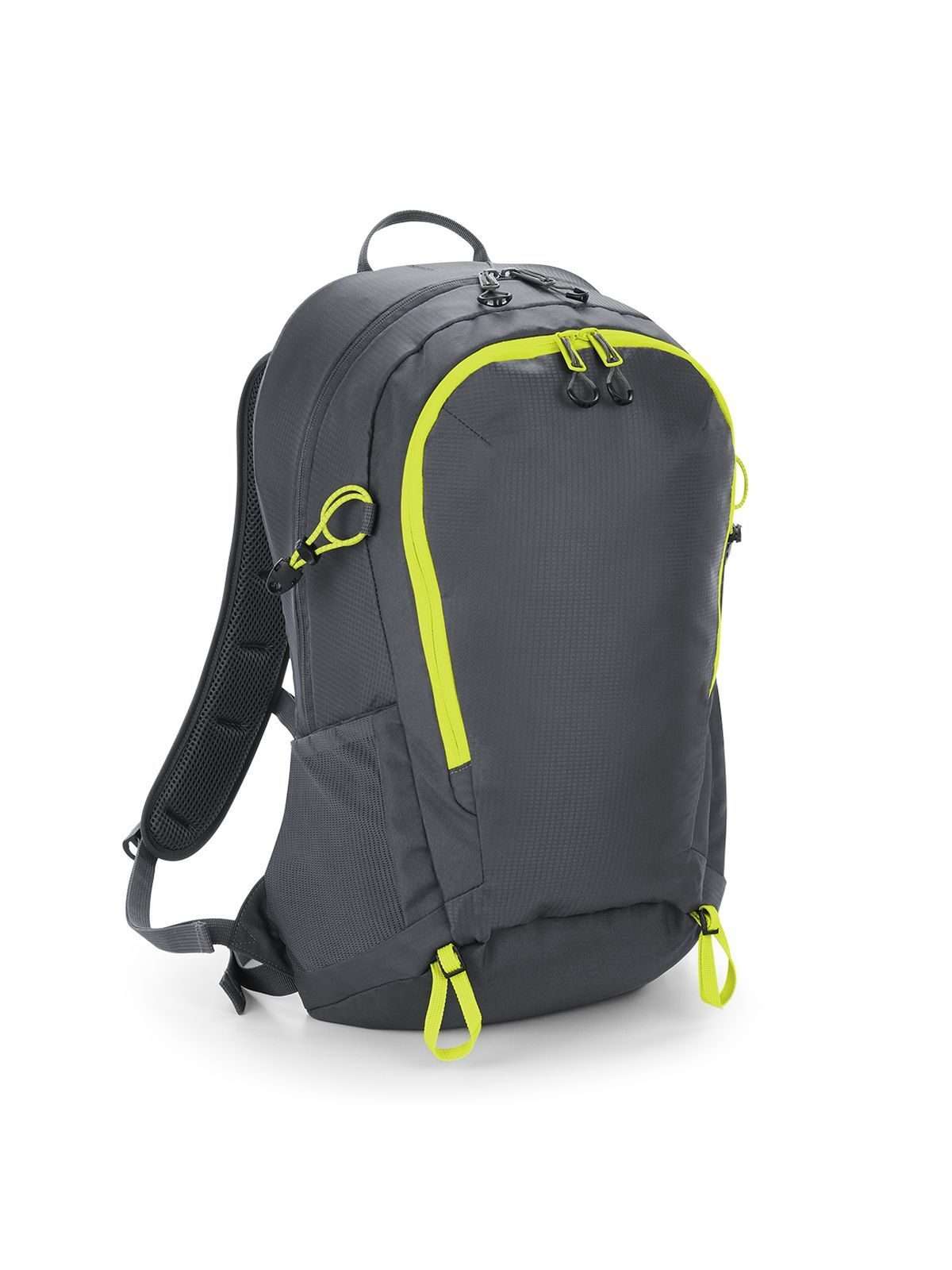 100% poliestere 210D. Zaino ultraleggero, con attacco per bastoncini da trekking, tessuto resistente all'acqua, copertura impermeabile rimovibile, tasca anteriore e interna con cerniera, tasche laterali in rete elastica, pannello posteriore ventilato, inserti riflettenti, con manico. Etichetta strappabile. Dimensioni: 30x50x21 cm, capacità: 25 litri, area di stampa: 20x25 cm.