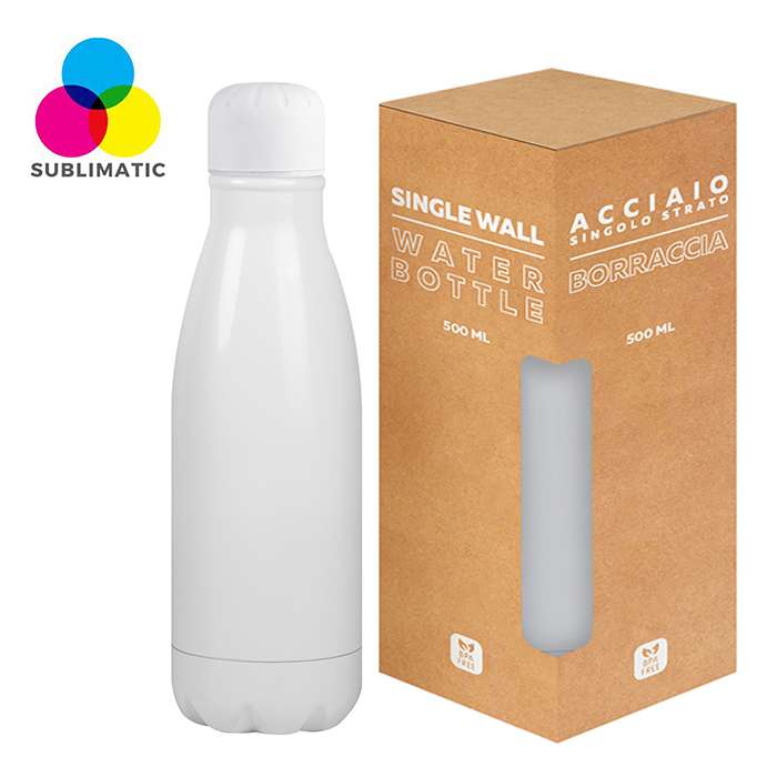 borraccia in acciaio inox 304; tappo in acciaio; singolo strato; capacità 500 ml; rifinitura lucida; tecnica di stampa consigliata: sublimatica
