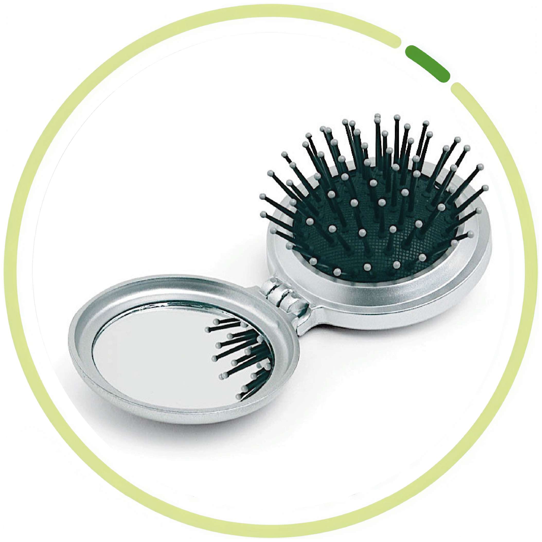 specchietto richiudibile con astuccio; doppio ingrandimento; il manico diventa una base di appoggio; confezione in tnt inclusa; tecnica di stampa consigliata: serigrafica - tampografica - UV