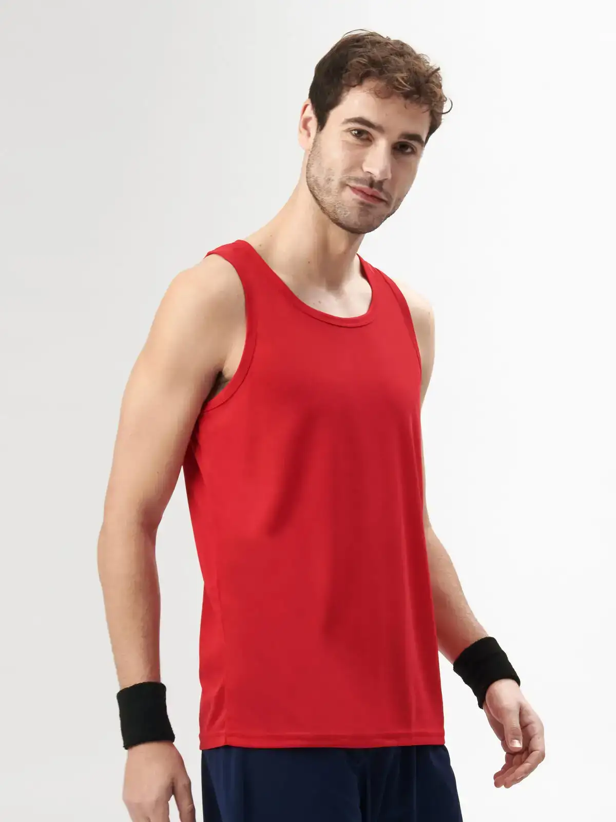 100% poliestere. Canotta con girocollo e giromanica bordati, tessuto traspirante, struttura con cuciture laterali. Etichetta removibile.