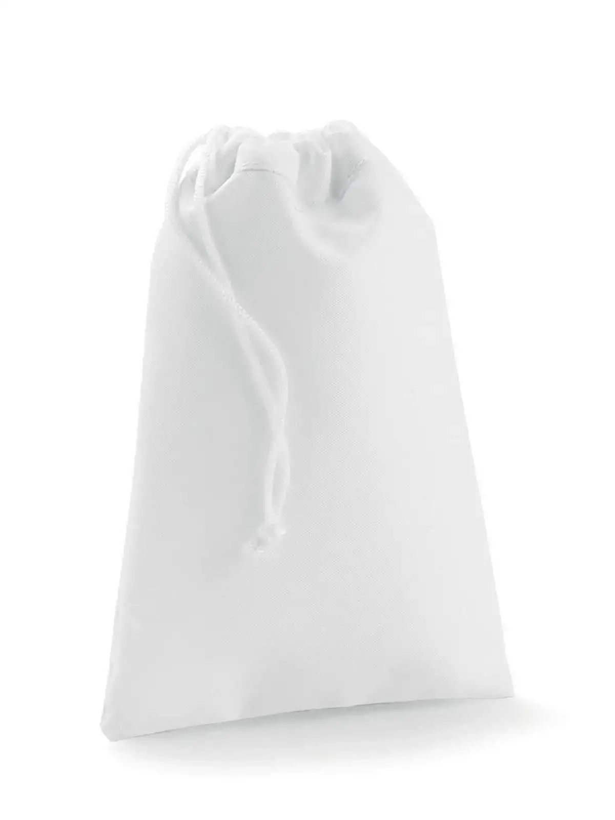 100% poliestere 300d. Sacchetto con chiusura con cordoncino removibile per facilitare la personalizzazione. Superficie adatta alla sublimazione. Etichetta removibile. Dimensioni: XS: 10x14, cap. 0,25lt. - S: 14x20cm, cap. 1lt. - M: 20x28.5cm, cap. 2,5lt. - L: 28.5x41cm, cap. 5lt.