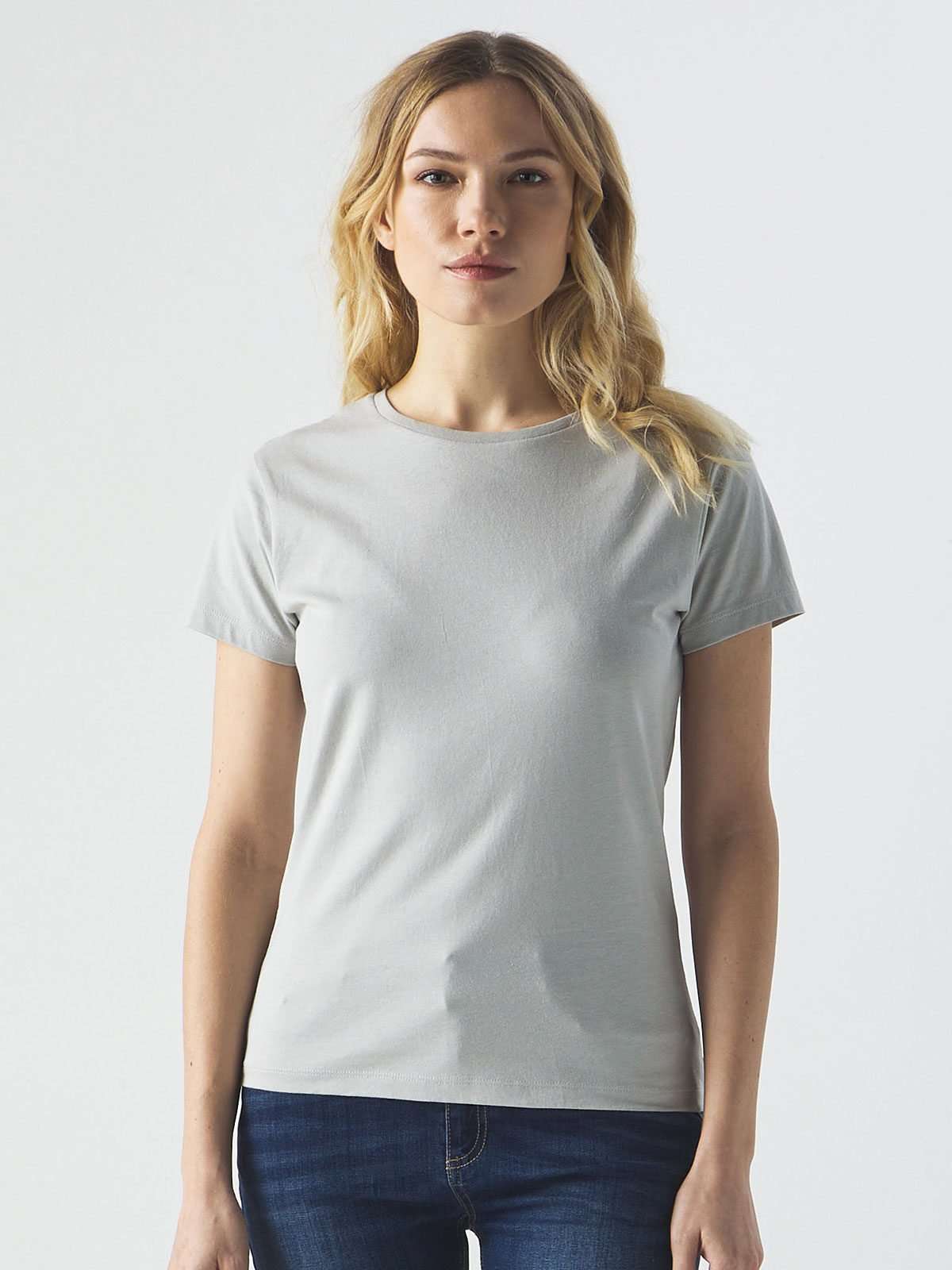 100% cotone . T-shirt manica corta, tessuto ring-spun single jersey, girocollo in costina con cucitura a doppio ago, nastro di rinforzo alle spalle, struttura con cuciture laterali, leggermente sfiancata. Etichetta strappabile. Composizione: Grey Heather: 85% cot. 15% visc.