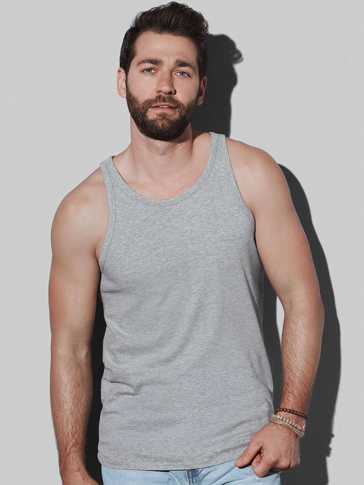 100% cotone filato ad anelli, single jersey. Canottiera da uomo, body fit moderno con cuciture laterali, scollo e giromanica bordati, etichetta della taglia intessuta nel colletto, etichetta di manutenzione a strappo nella cucitura laterale, lavabile a 40°C. Col. GYH: 85% cot, 15% visc.
