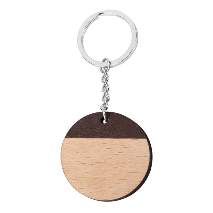portachiavi con anello in metallo ; forma circolare ; due colori