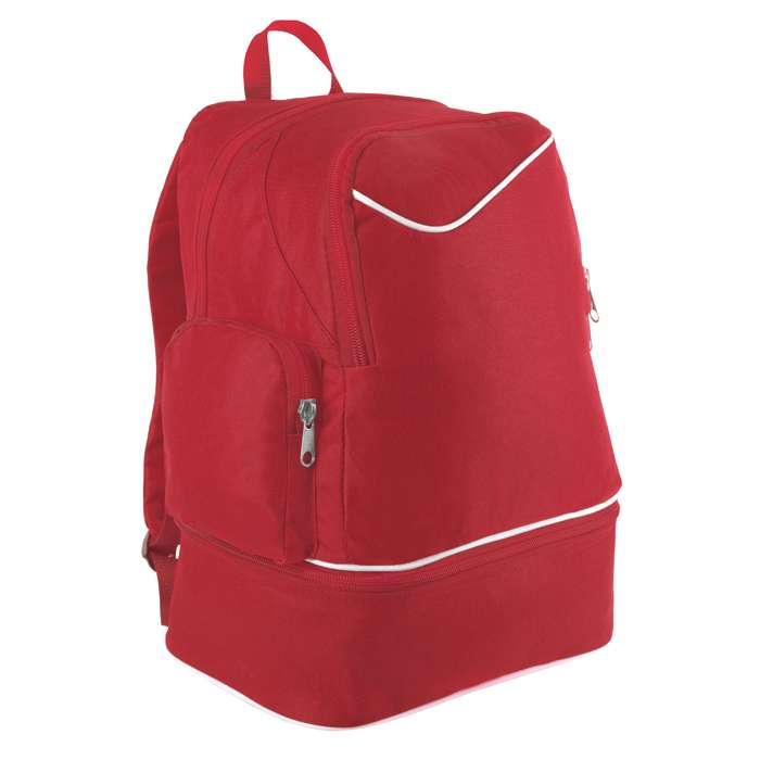 borsone sport in poliestere 600D; vano porta scarpe; doppia tasca laterale traforata con zip; tecnica di stampa consigliata: serigrafica - transfer