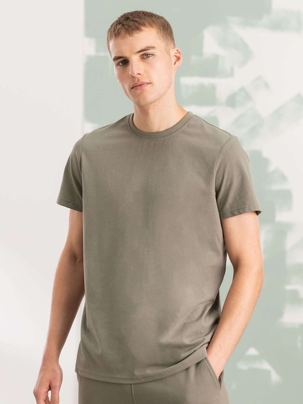 60% cotone rigenerato 40% poliestere riciclato, single jersey. T-shirt unisex maniche set-in con design spalla cadente, vestibilità ampia. Girocollo in costina, cuciture doppie su maniche e orlo. Etichetta senza brand. Busta riutilizzabile 100% plastica riciclata.