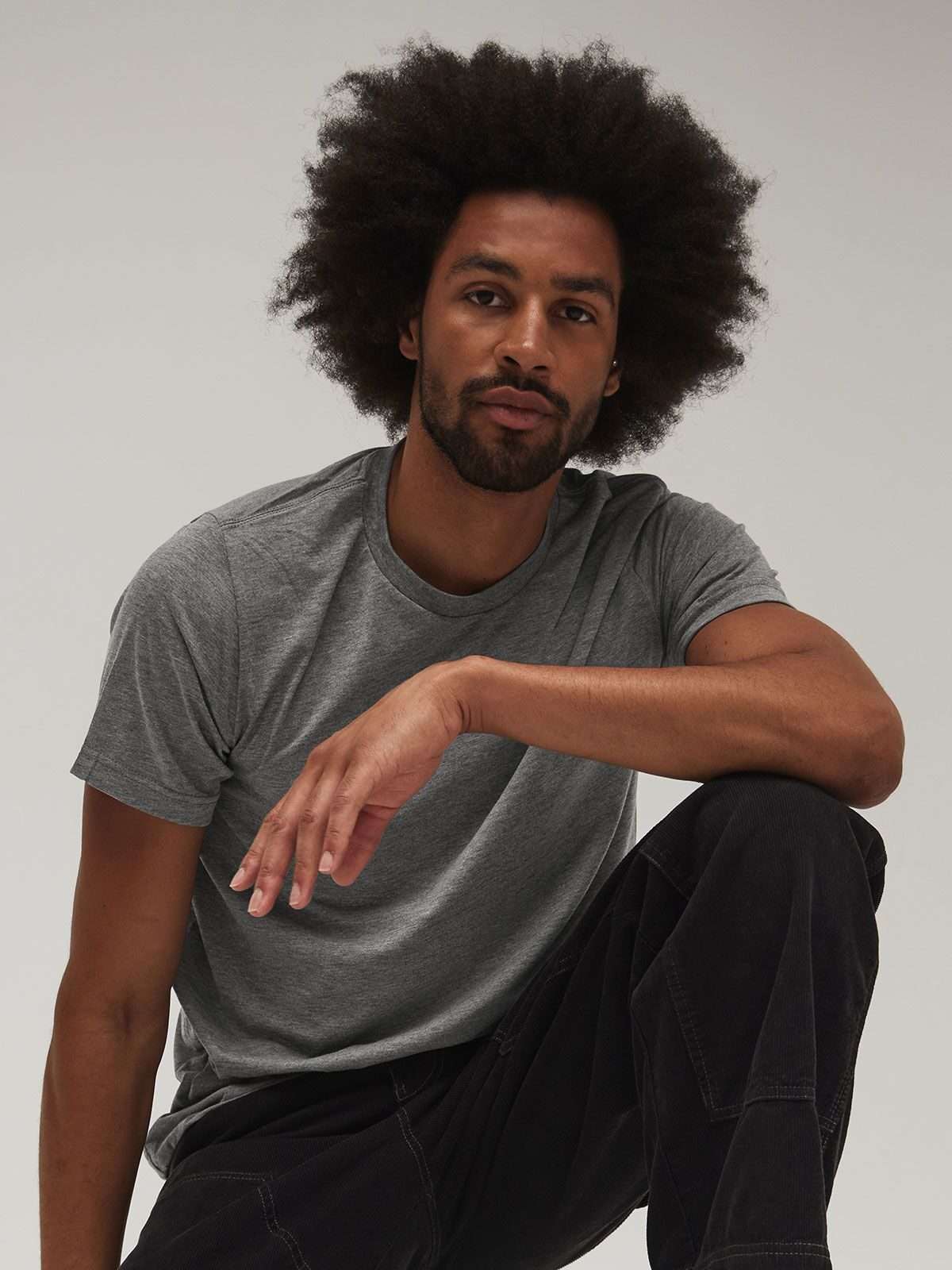 50% poliestere, 25% cotone ring-spun, 25% Rayon. T-shirt manica corta set-in, girocollo, struttura con cuciture laterali. Etichetta removibile.