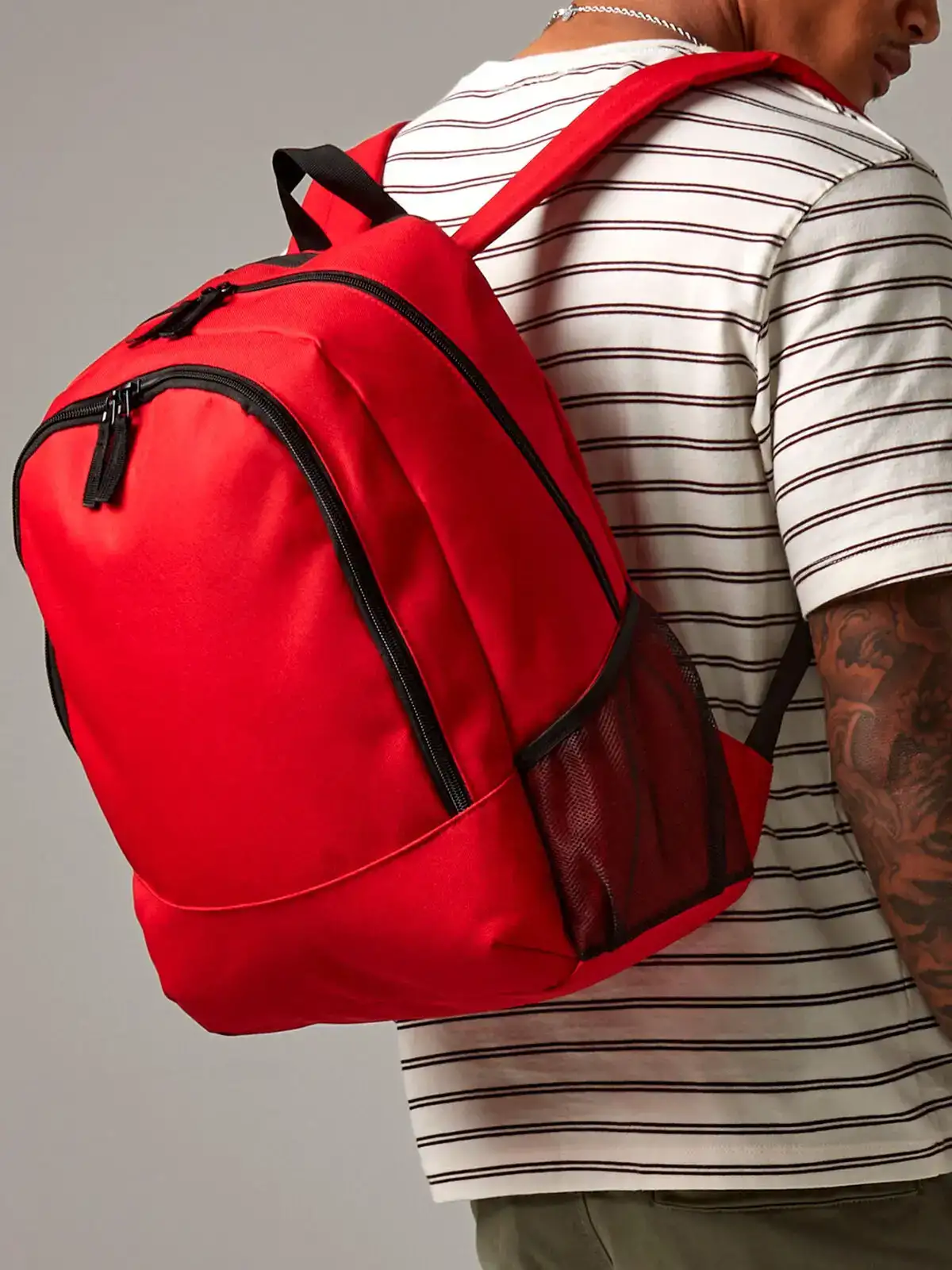 100% Poliestere 600D. Tasca superiore con zip, sezione organizer interna, Tasca laterale, Ampia tasca interna, Pannello posteriore imbottito, spalline imbottite e regolabili, Manico, dimensioni: 30 x 42 x 20 cm, Capacit??: 18 litri