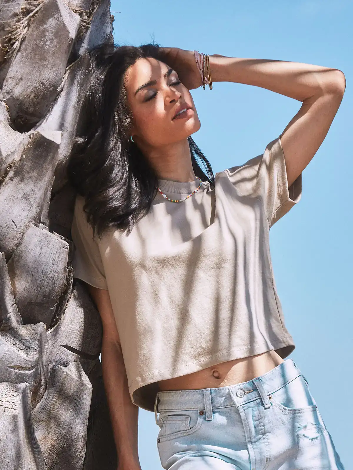 100% ringspun cotton. Oversize women's T-shirt, crop model with side seams, ribbed crew neck, shoulder-to-shoulder reinforcement tape. Tear-off neck label. Col.H001: 90%cot. 10%pol.