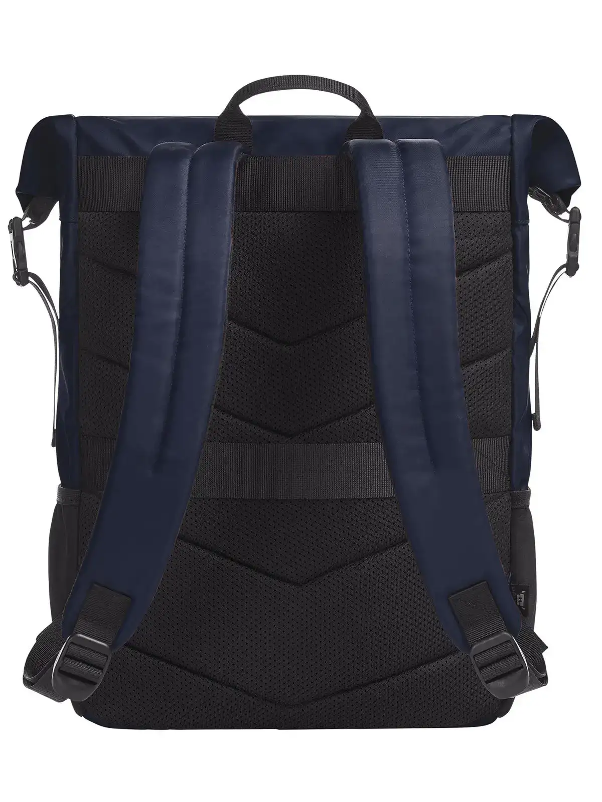 Polyamid 290d Twill. Zaino di alta qualit??, scomparto principale con chiusura lampo e chiusure a fibbia laterali, ampia tasca anteriore con chiusura lampo accessibile lateralmente, tasche a rete laterali, possibilit?? di fissaggio con luce per bicicletta a LED, fascia passante sul lato frontale, ampia tasca a inserto imbottita, tasca a inserto piatta e passanti per penna interni, anello di fissaggio sul retro per aste di trolley, sistema di trasporto ben imbottito, manico
