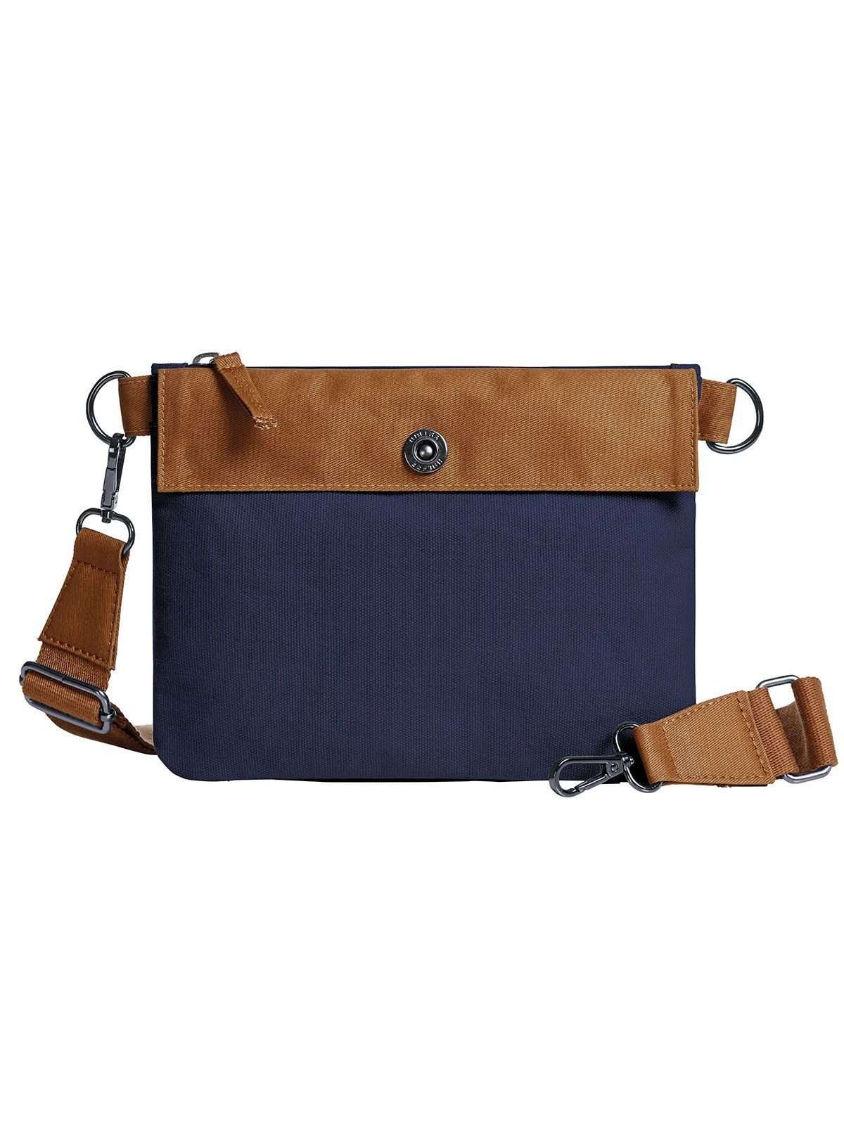 100% cotone. Borsa moderna con chiusura lampo, scomparto principale con zip, tasca anteriore richiudibile con clip, tracolla di cotone regolabile e removibile. Dimensioni: 23x18x0,1 cm. area di stampa su tasca anteriore: 17 x 8 cm.